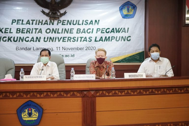 (Unila): Subbagian Hubungan Masyarakat (Humas) pada Biro Perencanaan dan Hubungan Masyarakat (BPHM) Universitas Lampung (Unila) menyelenggarakan Pelatihan Penulisan Artikel Berita Online Tahun 2020, Rabu (11/11/2020).